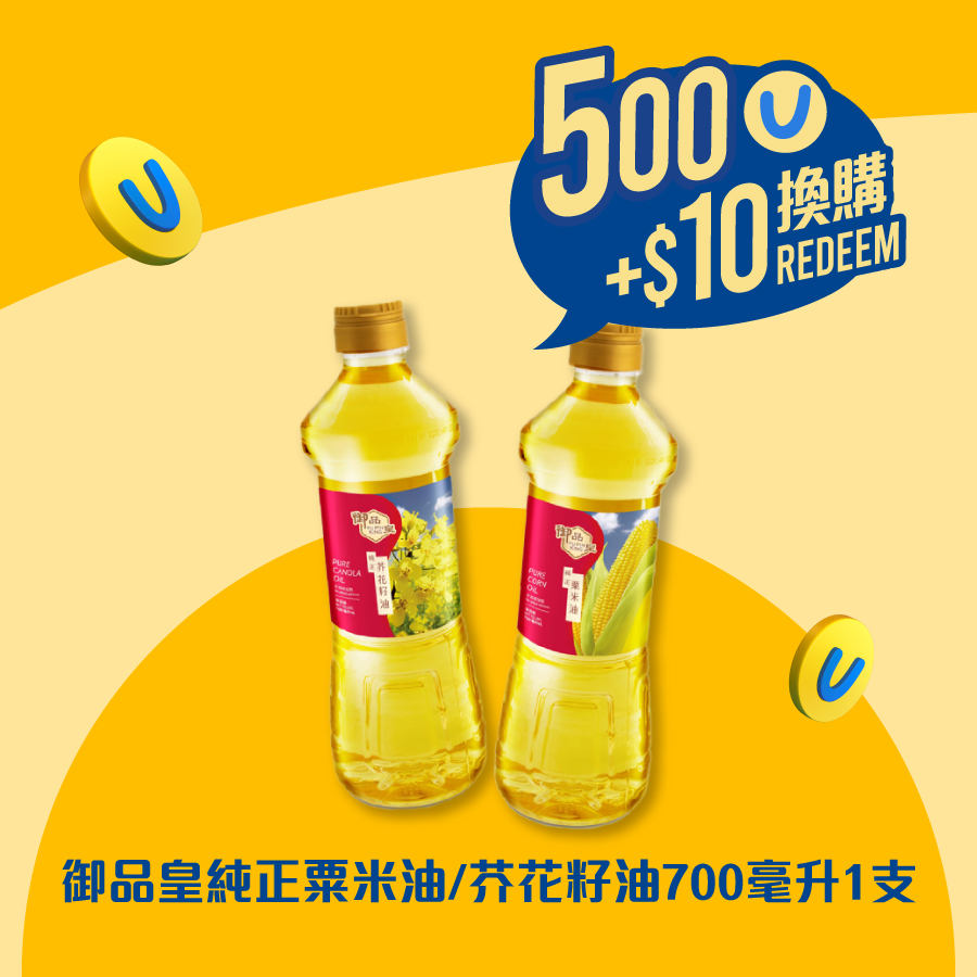 憑500分+$10換購御品皇純正粟米油/芥花籽油700毫升1支