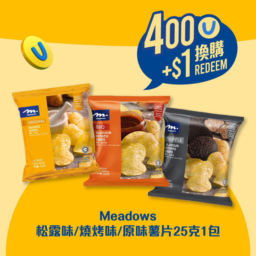 憑400分+$1換購Meadows松露味/燒烤味/原味薯片25克1包