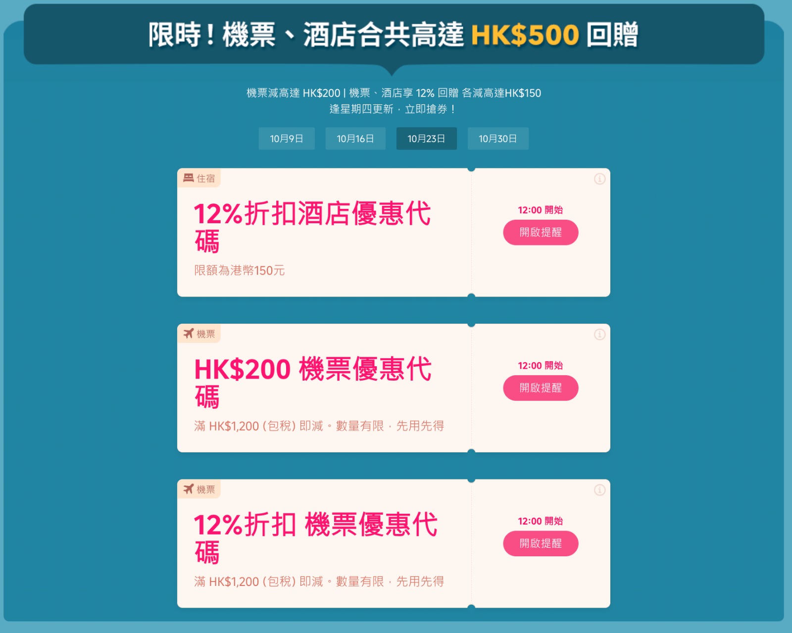 驚喜快閃優惠陸續登場 機票、酒店合共減高達HK$500 逢星期四慳更多