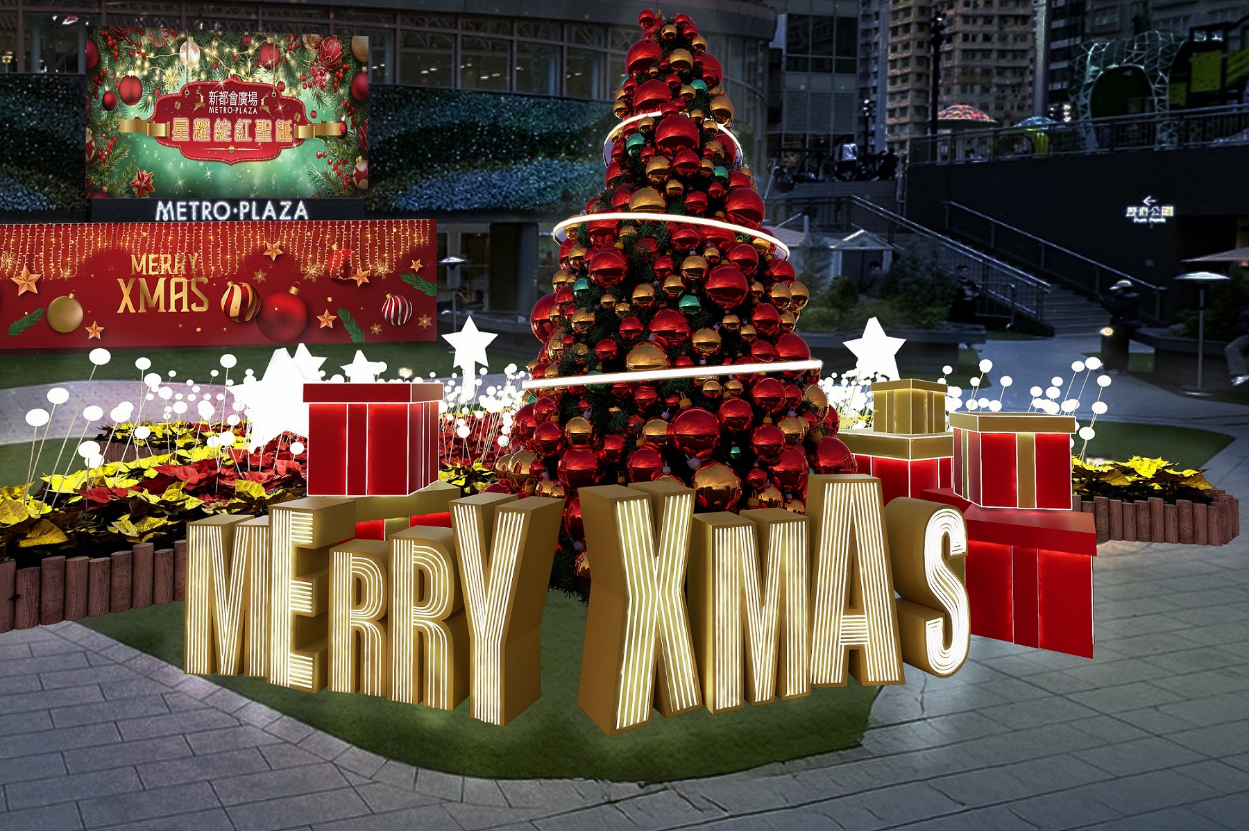 新都會廣場【星耀綻紅聖誕】期間限定戶外飄雪 置身冬日浪漫秘境