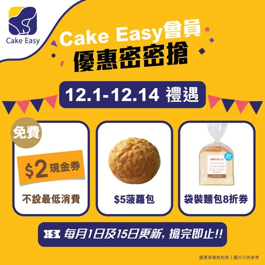 免費登記成為Cake Easy會員:https://tinyurl.com/5n6pu8px*優惠券數量有限,先到先得,搶完即止。