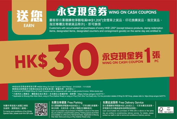 立即下載Wing On Rewards手機應用程式,尊享至筍購物優惠!