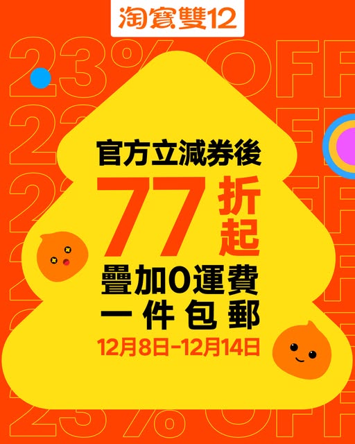 【淘寶雙12 正式開幕 官方立減77折起!https://intl.taobao.com/sk/_b.YzqN0 】年尾最强優惠 淘寶雙12開賣啦!今次雙12 官方立減券後77折起仲有最正嘅1件包郵keep住上88VIP享總值¥780大額消費券咁抵,仲唔即刻入貨淘寶雙12 | 即日起至12月14日23:59*包郵受條款及細則約束#Taobao #淘寶 #TaobaoHK #淘寶香港 #萬能的淘寶 #EverythingAndAnything #0蚊無門檻包郵 #0運費 #一件都包郵 #淘咩都包 #TaobaoIt #去淘一下#淘寶雙12 #雙12狂歡節
