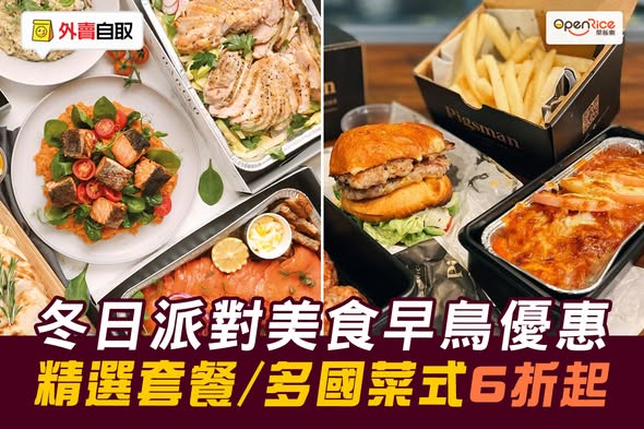 【#外賣自取 】聖誕佳節準備開Party嘅你,如果煩緊order咩嘢食,外賣自取早鳥優惠懶人包就幫到你!今期優惠無論套餐或單點items都有折,由清爽鮮蝦煙三文魚芒果沙律,到香口惹味嘅韓式炸雞、美國肉眼牛扒、燒烤雞肉薄餅等等任你揀,睇啱記得早啲預訂喇~即睇優惠詳情 https://s.openrice.com/Qrbc05oC000
