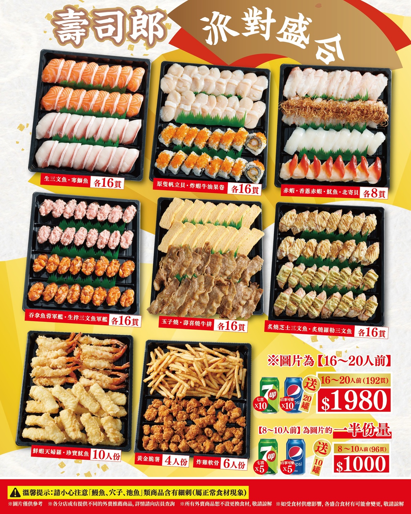 壽司郎全線分店均有販售【壽司郎派對盛合】(沙田中心店 除外)