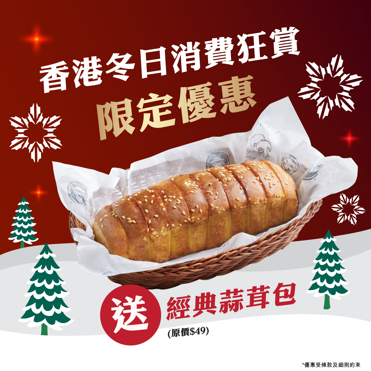 堂食惠顧滿$200或以上,或外賣自取惠顧滿$150或以上,即可免費獲贈一客經典蒜茸包!🧄🥖