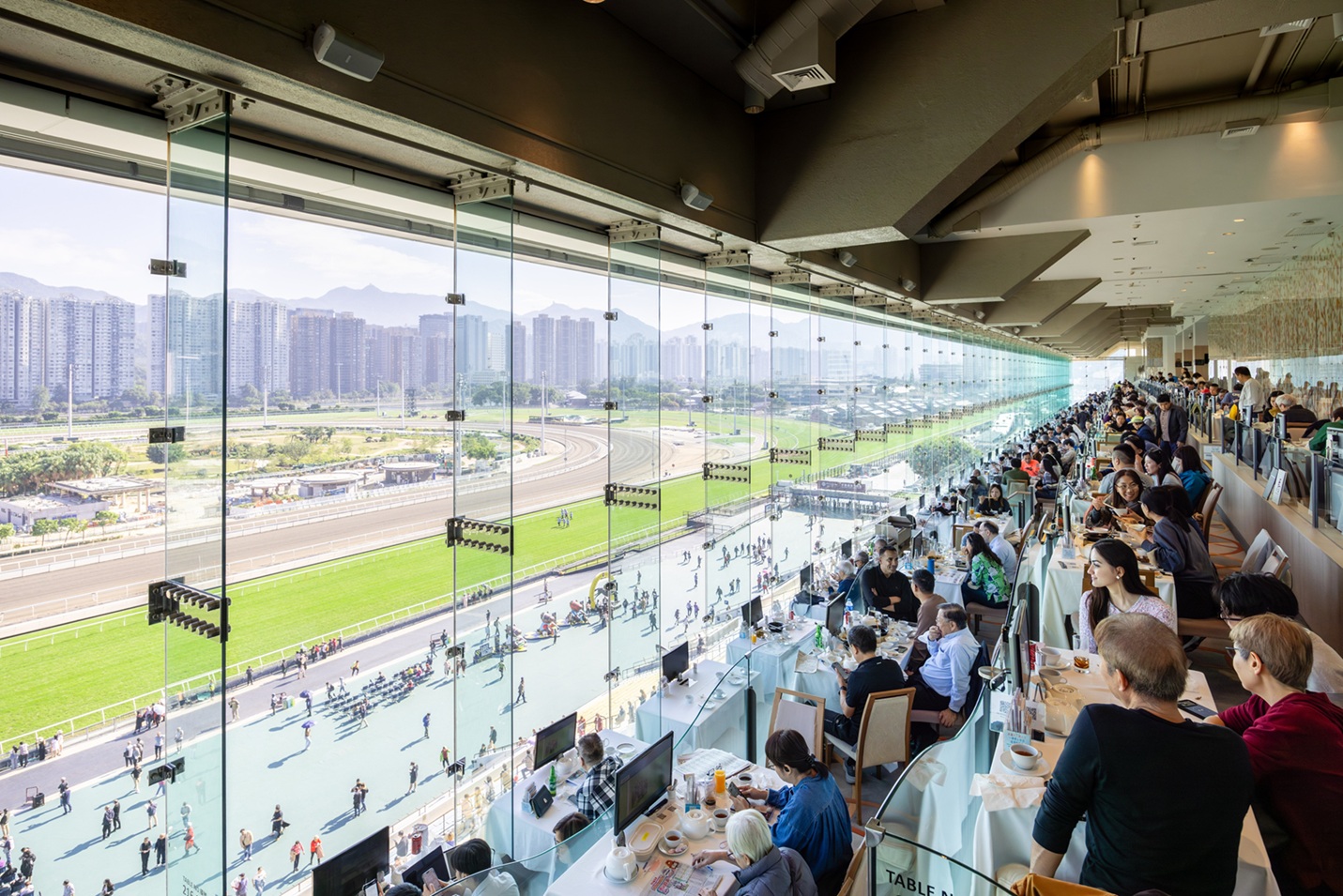 「百勝廳」位於沙田馬場二座看台5樓,是場內唯一可供公眾預訂的中菜廳,糅合餐飲與賽馬體驗。其全落地玻璃的高級典雅設計,讓饕客輕鬆飽覽沙田馬場全景,在品嚐中菜美饌的同時,觀賞馬匹衝刺的刺激一刻,感受不一樣的臨場觀賽體驗。現場更設有80吋特大LED電視直播賽事,而部份餐桌特設私人電視,適合與親朋好友一同見證整日賽事,絕對是親朋相聚或節日慶祝飯聚的好去處。