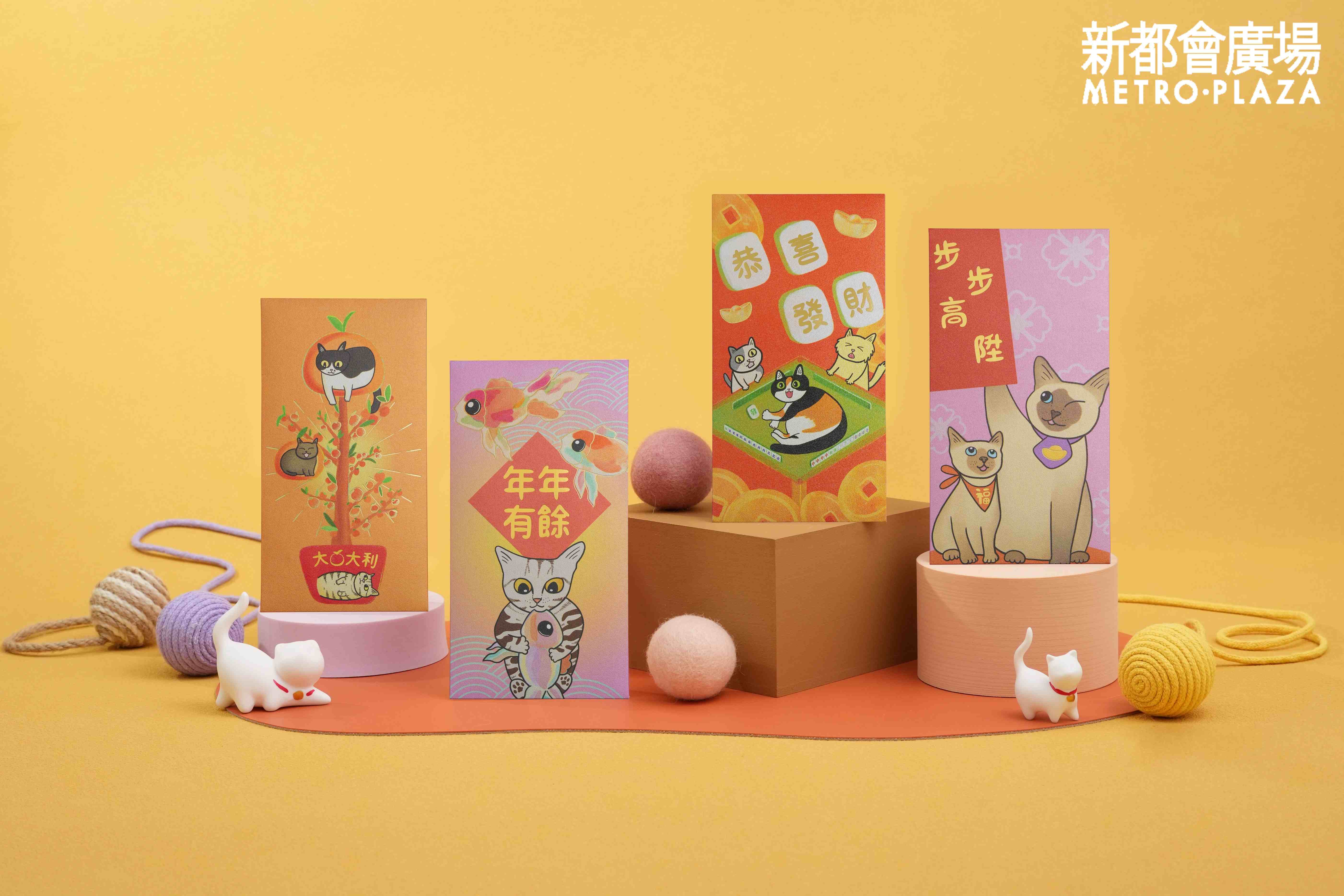 貓不僅形象趣緻可愛,在傳統文化中亦有招財納福的象徵。農曆新年將至,葵芳新都會廣場今年新春特意聯乘本地插畫師Giselle,以「貓肥屋潤」為主題,設計了一套四款限量版賀年利是封。貓咪一直是「福氣擔當」,是次的利是封設計巧妙地將寓意吉祥的超萌貓咪與傳統新年祝福完美融合,向全港市民送上財源廣進、萬事順心的美好心意,與大家一同喜迎新歲!商場現召集一眾貓奴主子齊來支持!