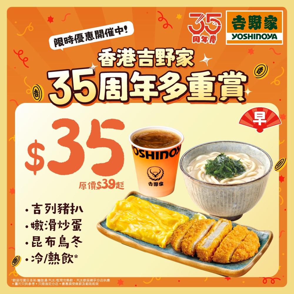 【香港吉野家35歲喇! 🎊 】多項優惠