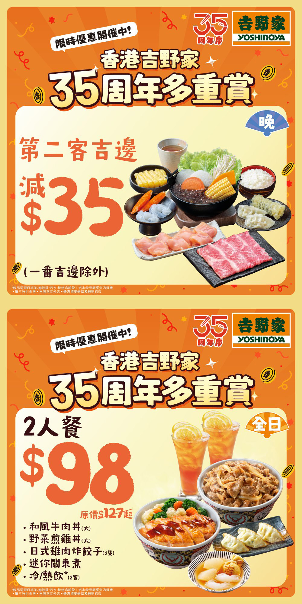 : 憑會員優惠券,第二客吉邊減 $35^全日$98 2人餐
