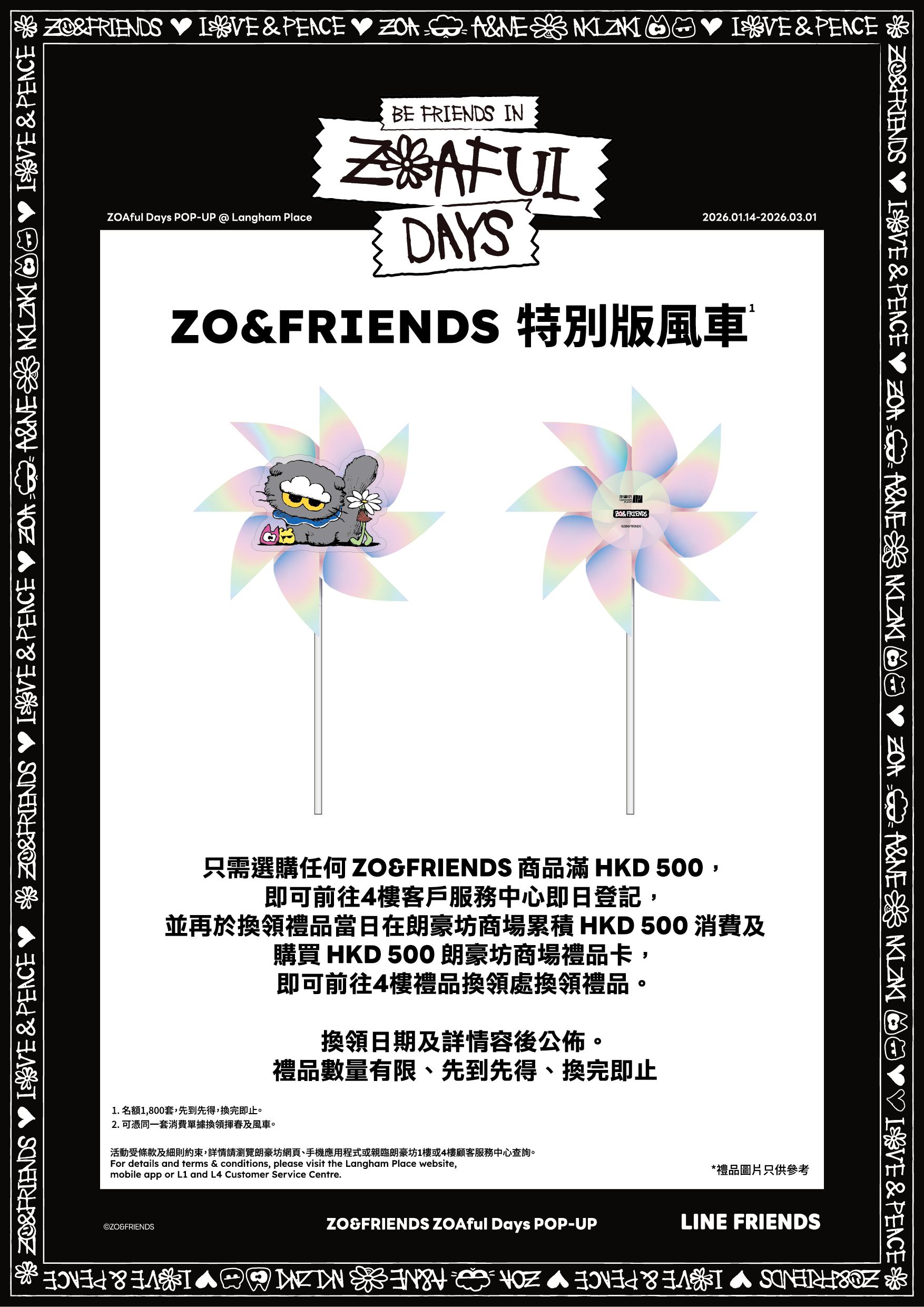 朗豪坊商場禮品卡首度登場 頭炮禮遇送 ZO&FRIENDS特別版風車