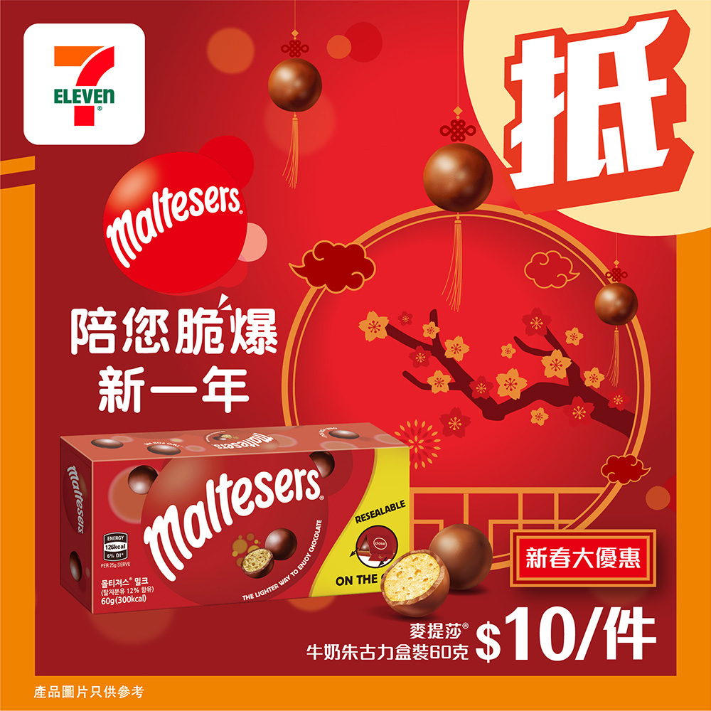 由即日起至5月5日,嚟 7 仔買麥提莎牛奶朱古力盒裝60克即享新春優惠價$10/件*,快啲嚟 7 仔入手,一齊脆住迎馬年啦