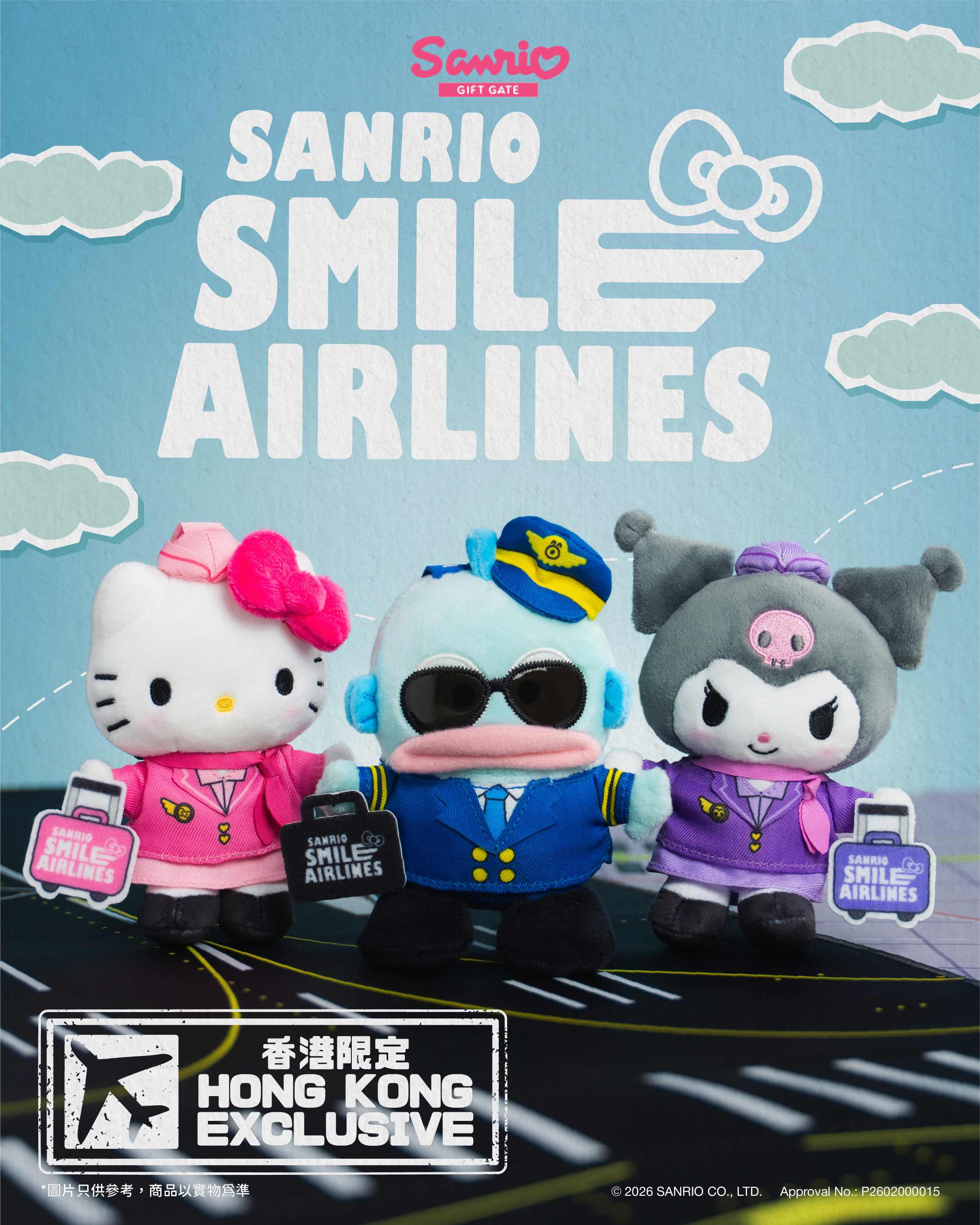 對於香港人來說,一年四季也是旅行的季節,對於飛行員是再熟悉不過!荃灣廣場將於3月25日至4月14日在L1長廊設置「Sanrio characters 夢幻飛航期間限定店」,Hello Kitty、Kuromi 及Hangyodon將換上飛行員套裝,可愛模樣治癒力max!店內設置機場打卡位,除了獨家首發Sanrio Smile 航空造型系列,更為你搜羅了大量Sanrio精品,當中包括公仔鑰匙扣、化妝包、家居及個人用品,款款精緻可愛,更有每週精選貨品,指定貨品低至4折,勢必讓粉絲們失心瘋,買不停手!