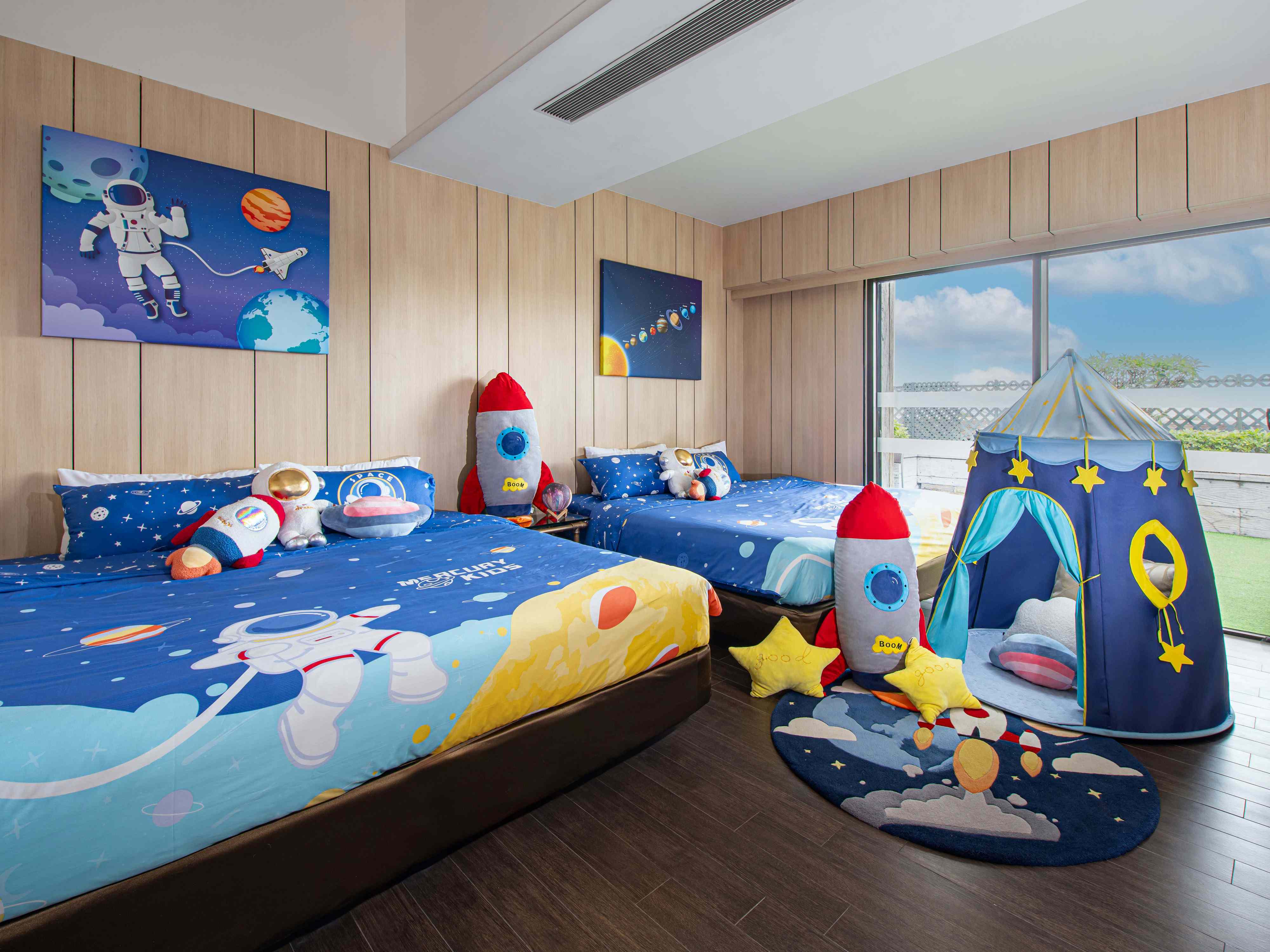 其中的「星宇漫遊主題客房」科幻感十足,房間設計滿載浩瀚宇宙元素,猶如有多艘萌趣火箭登陸星球,一家大小與太空人夥伴漫遊星際;搭配星系圖案的帳篷、地氈與寢具,彷如於星球上度過神秘夢幻的探索旅程,更可延續永不停歇的太空夢。酒店在今個復活節推出驚喜住房套票,每晚房價低至HK$1,638起入住 (視乎入住人數、所選房型及日子供應)。