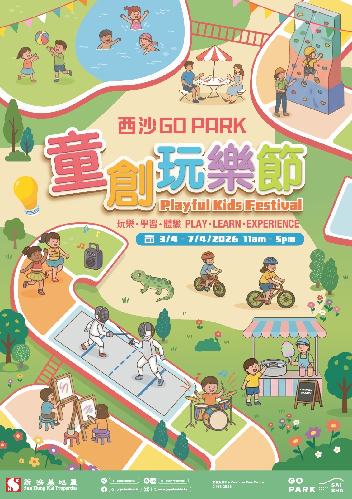 為讓家長及小朋友親身體驗GO PARK「探索學玩天地」的特色,西沙GO PARK將於4月4日兒童節舉辦「親子半日營」,由場內教育及玩樂體驗商戶聯合策劃,透過互動工作坊及體驗課程,讓家長與孩子一同探索多元才藝,寓學於樂,同時家長亦可深入了解不同興趣班特色,為孩子物色最合適的課程。半日營設有三大主題體驗課程,活動包括: