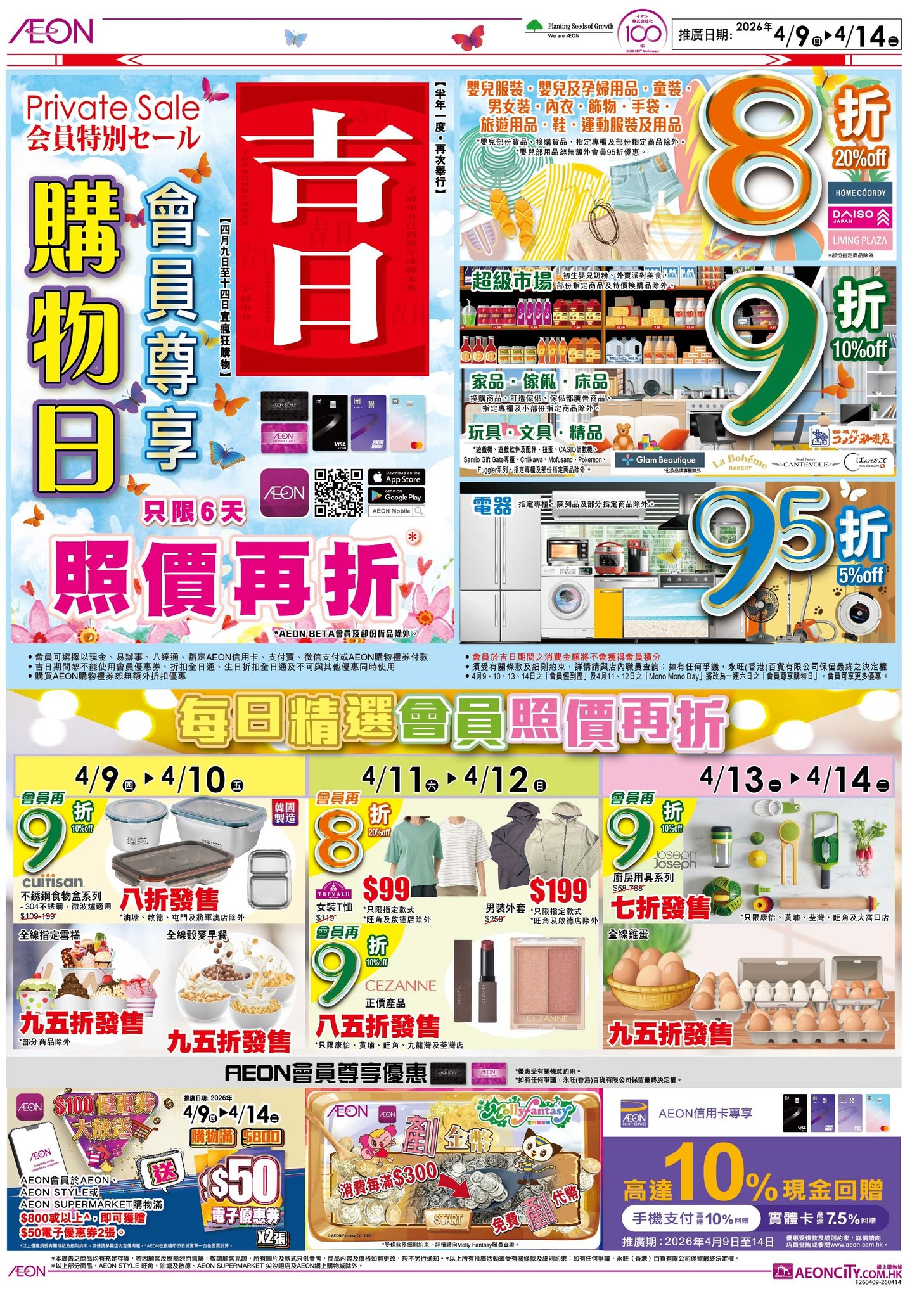 推廣地點: 全線AEON**AEON BETA會員及部分貨品除外,部分貨品恕無照價再折優惠,部份貨品只於指定分店發售