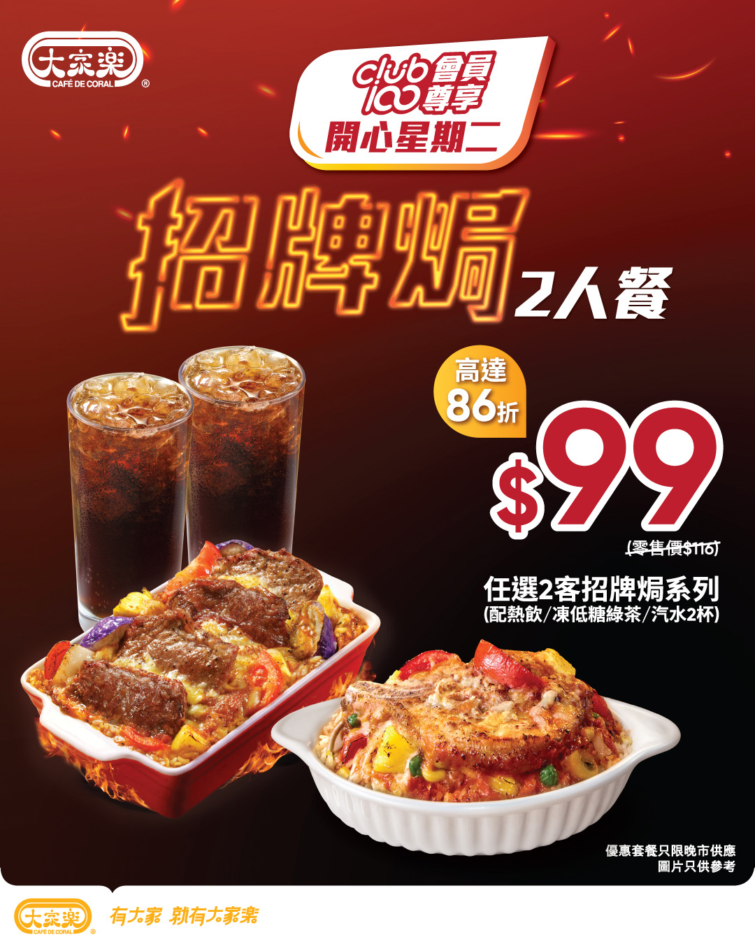 #CafedeCoral #CafedeCoralhk #大家樂 #有大家就有大家樂 #Club100 #招牌焗系列 #二人餐 #開心星期二 #打工仔飯堂