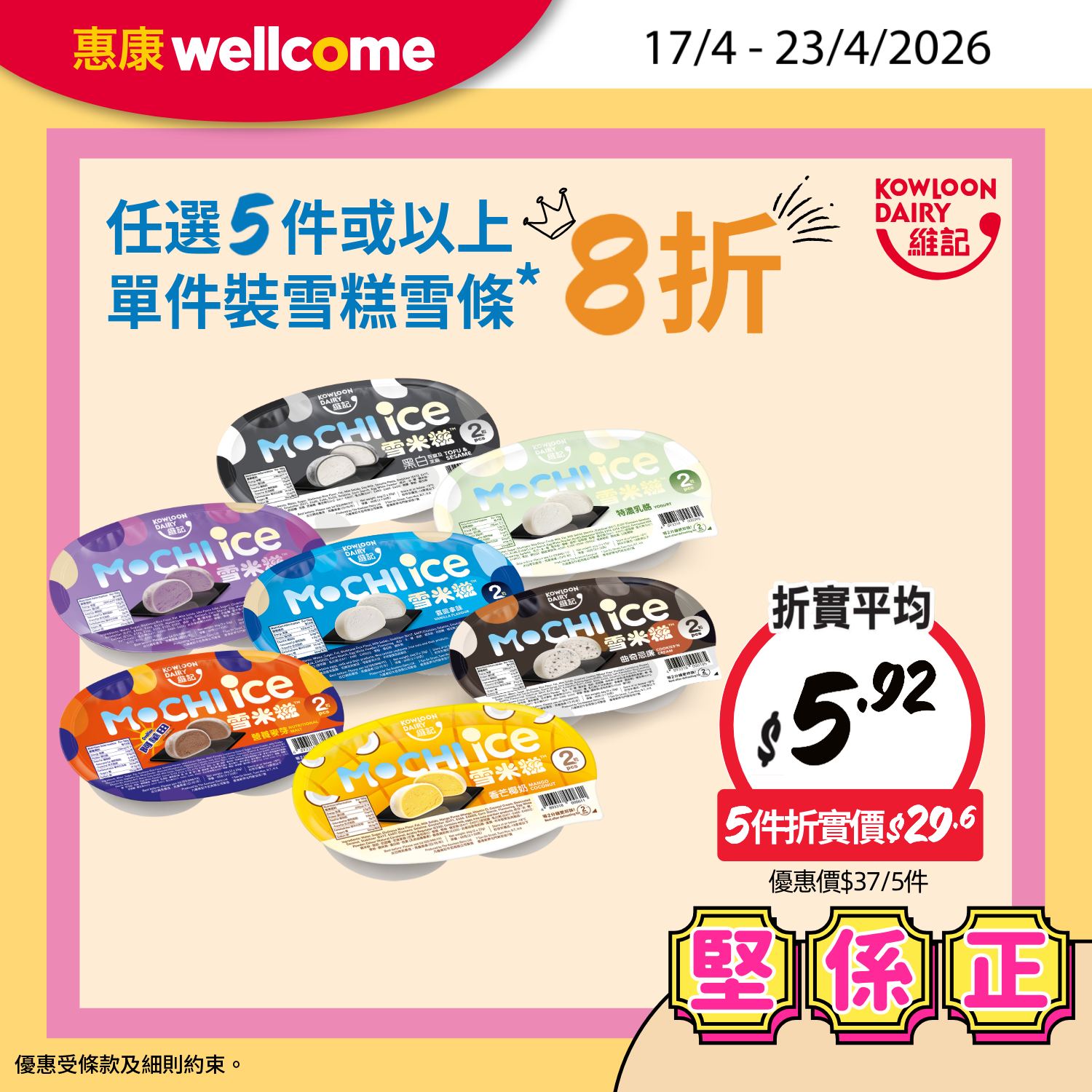 維記 2粒裝雪米糍 5件折實價$29.6,折實平均$5.92/件優惠期:17/4 – 23/4/2026