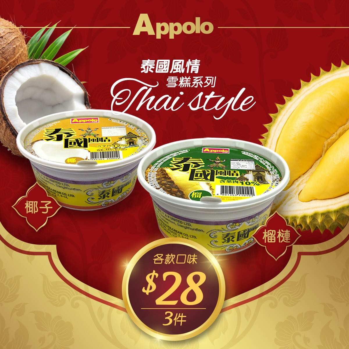 #Appolo#阿波羅雪糕#雪糕#雪條#優惠 泰國風情 榴槤 椰子d