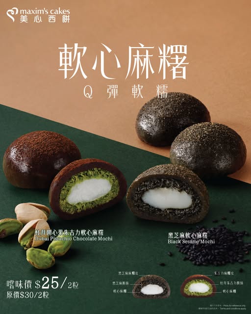 【韓國大熱杜拜朱古力・黑芝麻軟心麻糬正式登場】甜品控同麻糬控注意 全新雙重口感麻糬正式於美心西餅登場 杜拜開心果朱古力軟心麻糬韓國大熱杜拜朱古力強勢登場棉花糖般柔軟麻糬外皮 + 杜拜朱古力脆絲夾住軟心麻糬,脆卜卜又煙韌杜拜朱古力控必試! 黑芝麻軟心麻糬黑芝麻麻糬外皮 + 香脆黑芝麻脆絲最入面仲有綿綿軟心麻糬一口食到雙重香濃芝麻味!現時分店還有超抵嚐味價 $25/2 粒,可以一次試兩款口味,請即到分店選購啦!*優惠受條款及細則約束,詳情請向店員查詢#美心西餅 #杜拜朱古力 #杜拜朱古力麻糬 #黑芝麻 #黑芝麻麻糬 #麻糬 #限時優惠 #甜品