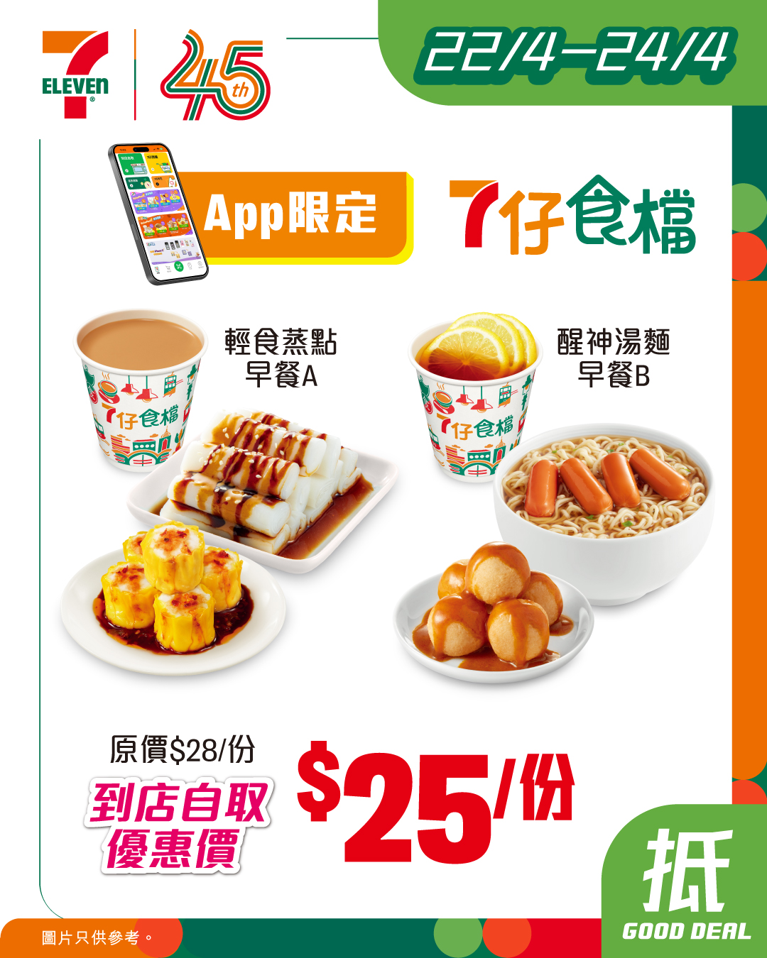 ・7仔食檔早餐優惠:2026年4月22日至4月24日(早餐供應時間為早上7時至11時)