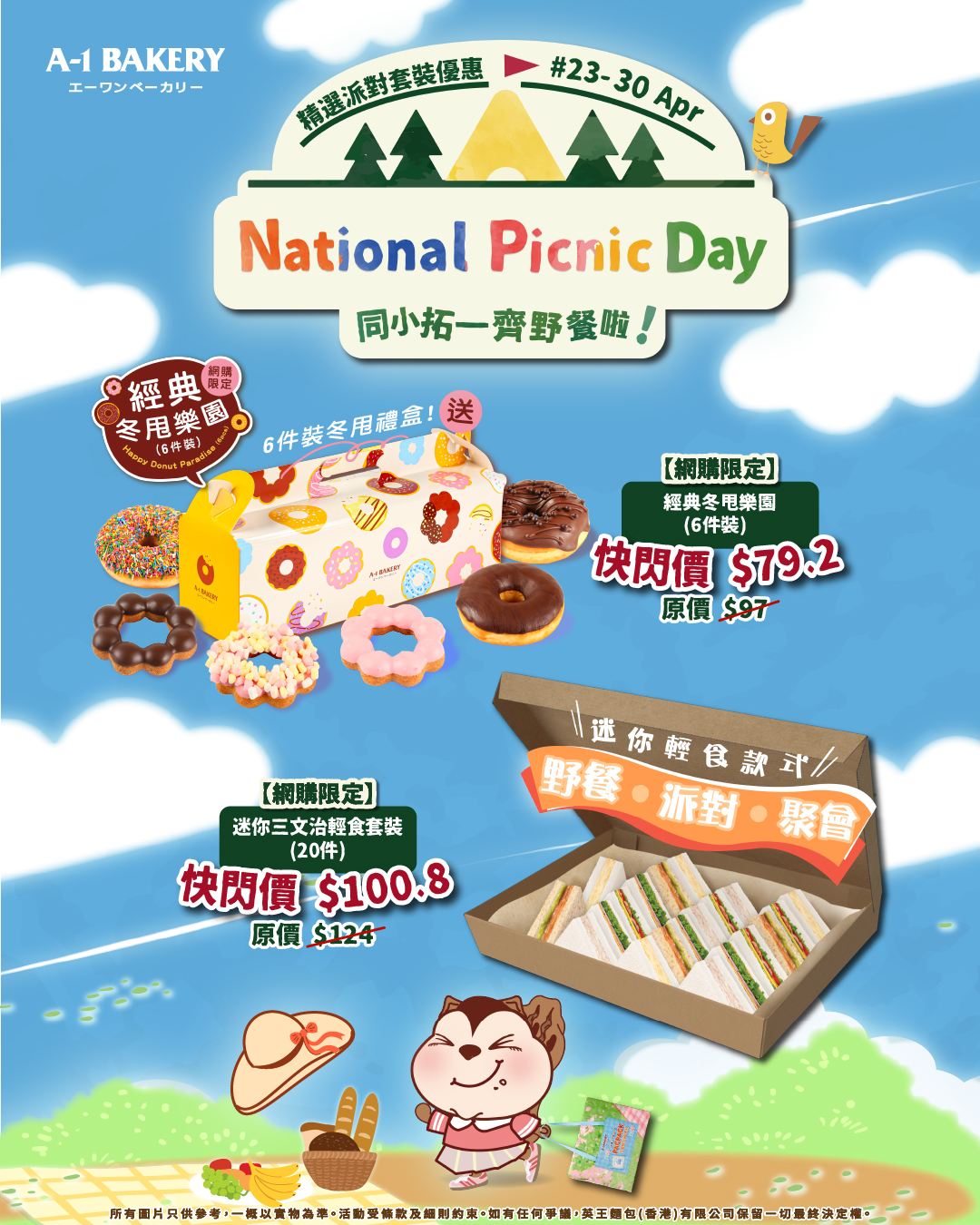 天氣咁好一於同小拓一齊去野餐啦! 網購限定派對套餐有快閃優惠,限時低至折。A-1 VIP紅/銀卡會員更可享有額外優惠!此推廣為【網購限定】活動,只限 Click & Collect 網店預訂,限量供應,售完即止。